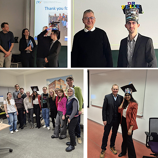 Felix Glinka has successfully defended his PhD thesis on Project C2, presenting his work on “Sequence–structure–function analysis of S. aureus and S. pneumoniae extracellular serine proteases” on 21.1. 2026. His defense was marked by sharp scientific insight and impressive argumentation during an in-depth discussion with the committee, all in front of a large and attentive audience. We’re incredibly proud of Felix’s achievement. Congratulations, Dr. Felix!
